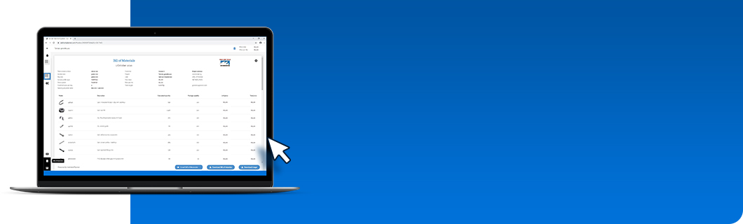 - Kies ‘Bill of Materials’ voor een compleet materiaaloverzicht incl. offerte